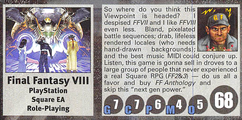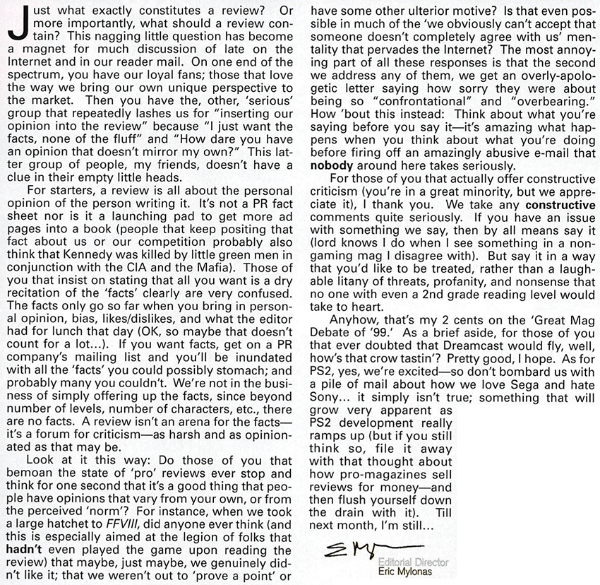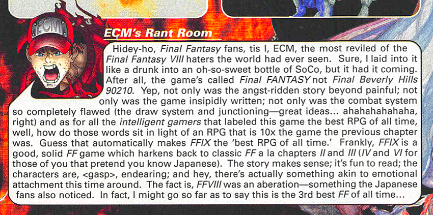 He is famous for his no-holds-barred review of Final Fantasy VIII. While every other publication was gushing with praise, Eric called it out like the joke that it was: